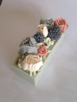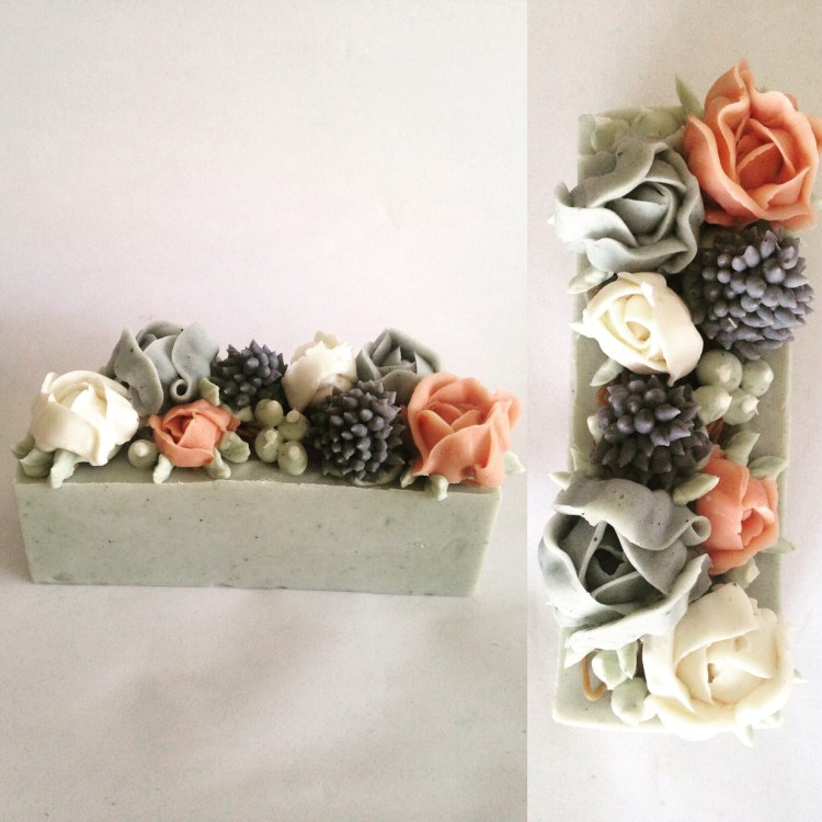 I’ve been piping more soap flowers and I put them together as a flower arrangement. I think this would be a great display in a bathroom and make a real statement. Not to mention how wonderful it is for the skin with shea and cocoa butters. All natural ingredients 🙂